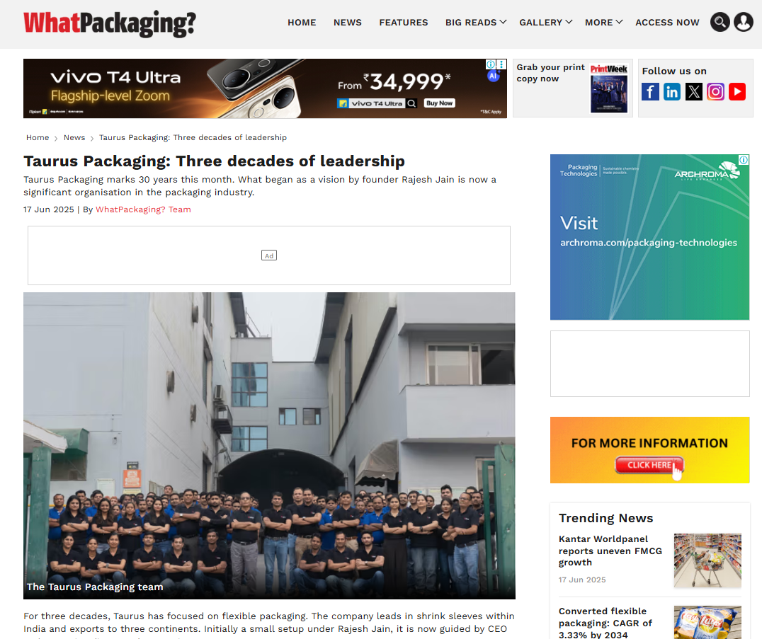 Taurus Packaging: Three decades of leadership