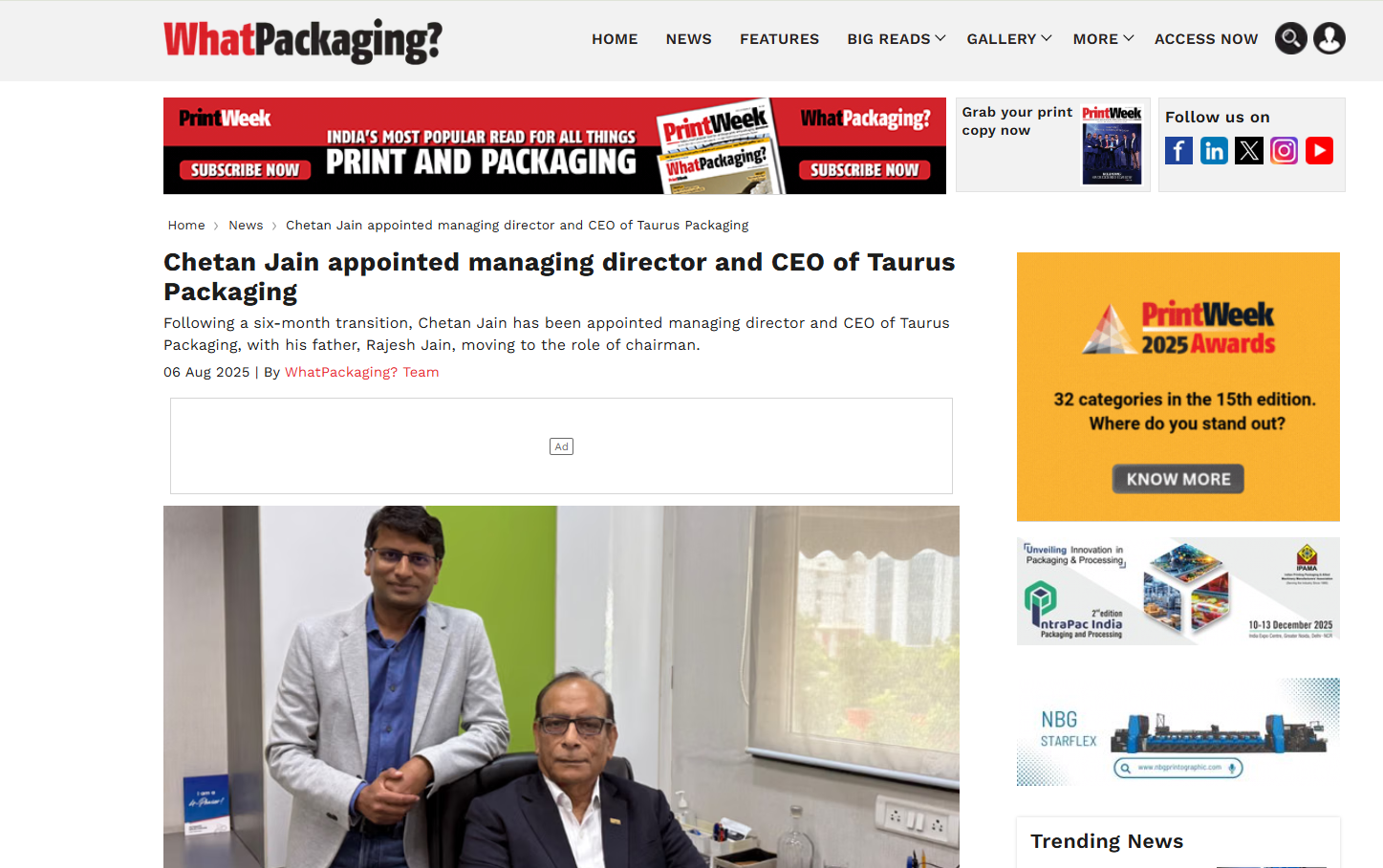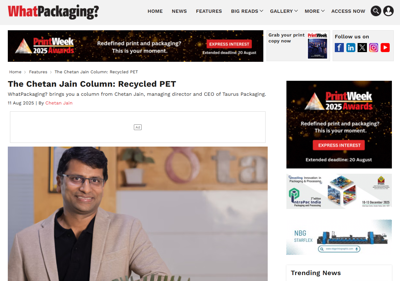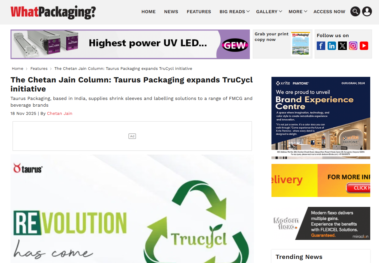 The Chetan Jain Column: Taurus Packaging expands Trucycl initiative