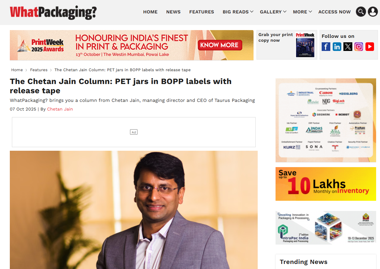 The Chetan Jain Column: PET jars in BOPP labels with release tape