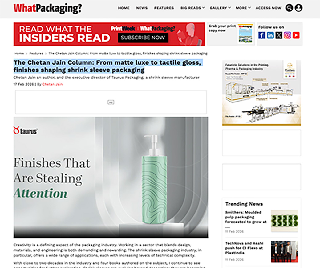 The Chetan Jain Column: From matte luxe to tactile gloss, finishes shaping shrink sleeve packaging